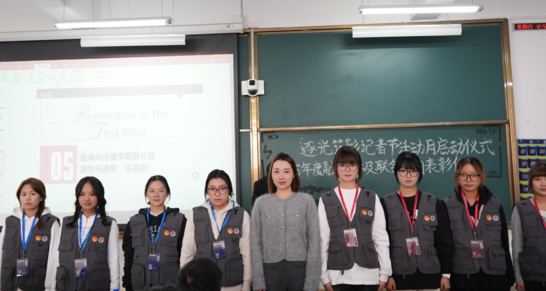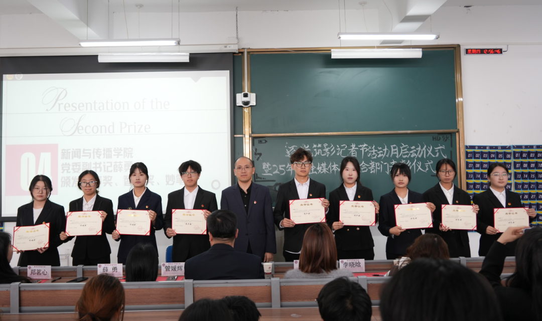 2025年11月6日12:40,新闻与传播学院于301教室召开第一届新闻与传播学院“逐光筑影”记者节活动月启动仪式暨25年融媒体及联合部门表彰仪式。