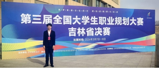 我院大四学生单鉴森,深耕职业规划,立足职场发展实际精准备赛。备赛期间,他结合自身专业积淀与未来职业发展方向,不断打磨规划逻辑、完善实践履历,兼具清晰的自我认知、成熟的行业洞察与完善的成长体系。赛场之上,他从容自信、沉着沉稳,凭借缜密严谨的规划思路、贴合行业的发展定位与落落大方的现场表现力,在全省众多参赛选手的激烈角逐中脱颖而出,一举斩获就业赛道省级金奖。凭借全方位的优异表现,他成功跻身全省仅10席的国赛推荐名单,获得晋级全国总决赛的宝贵资格,他将代表吉林省登上国家级竞赛舞台,全力拼搏、奋勇争先,充分展现国际教育学院学子扎实的综合素养与昂扬的青春风采!