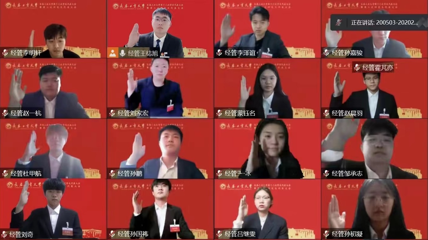 会上,学校第十二届学生会执行主席任强代表第十二届学生会作题为《学习二十大 永远跟党走 奋进新征程 在实现中华民族伟大复兴新征程中跑出当代青年的最好成绩》的工作报告,学校第二届研究生会执行主席石红玉代表第二届研究生会作题为《坚定理想信念 牢记服务宗旨 搭建桥梁纽带 为学校培养德才兼备的高层次人才做出积极贡献》的工作报告,第十二次学生代表大会常任代表张庆翔代表第十二次学生代表大会常任代表会议作题为《坚持主责主业 牢记服务宗旨 监督履职尽责 努力塑造清新阳光的组织形象》的工作报告,第二次研究生代表大会常任代表辛雨代表第二次研究生代表大会常任代表会议作题为《坚定理想信念 践行求真务实 力争为学校人才建设发展做出贡献》的工作报告,全面总结梳理了我校学生会组织和常任代表会议过去一年的各项工作和主要成绩。全体代表在正式会议上,审议并通过了《长春工业大学第十二届学生会工作报告》《长春工业大学第二届研究生会工作报告》《长春工业大学第十二次学生代表大会常任代表会议工作报告》《长春工业大学第二次研究生代表大会常任代表会议工作报告》。以无记名投票的方式,选举产生长春工业大学第十三次学生代表大会常任代表、第三次研究生代表大会常任代表、第十三届学生会主席团成员和第三届研究生会主席团成员。