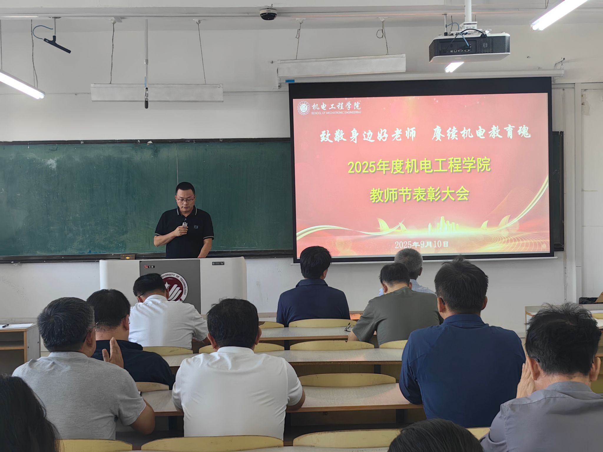 本网讯(通讯员 毛艳)9月10日,为庆祝第41个教师节,机电工程学院在南湖校区主楼1592教室召开了“致敬身边好老师,赓续机电教育魂”优秀教师表彰大会,全院教师齐聚一堂,共同庆祝这个属于教育工作者的节日。大会由学院副院长卢明明主持。