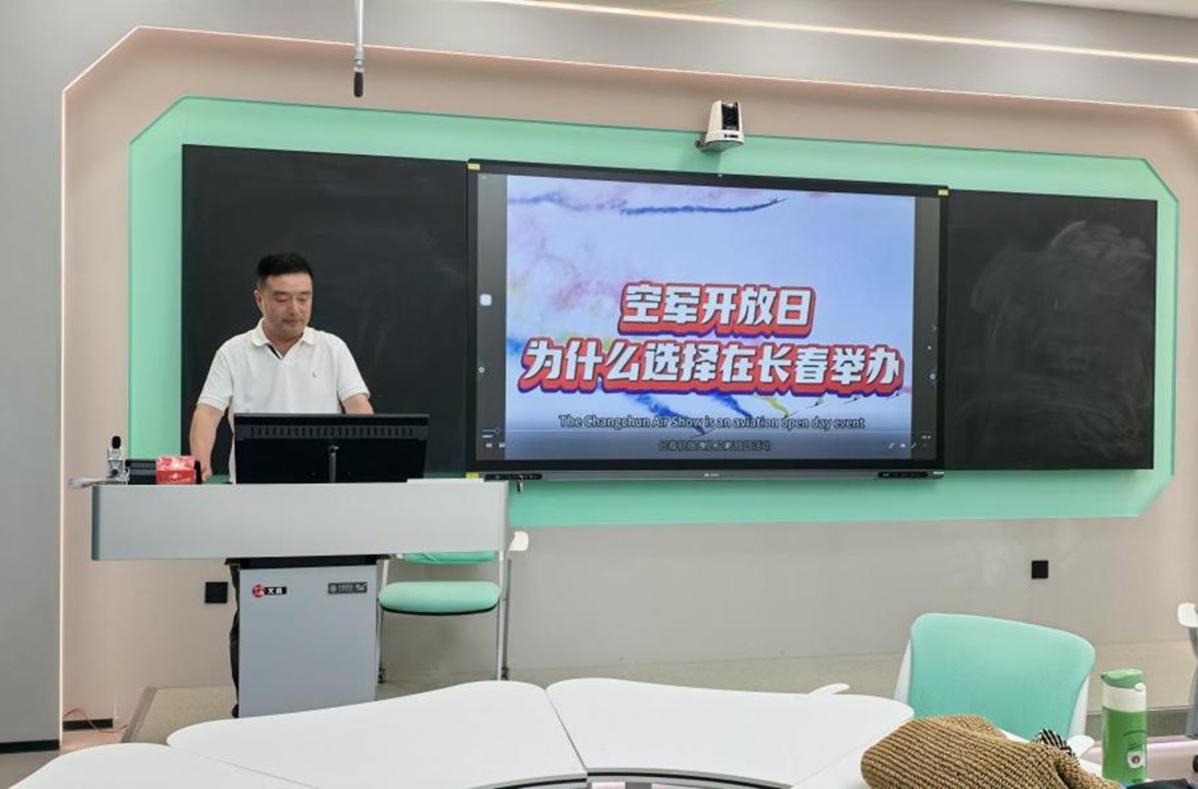 第一教研室主讲教师张力、关晶、徐朝阳和刘灿,以“AI技术高效赋能外语教学”为核心议题,展示融入课程思政元素的教学案例,如利用AI技术筛选中外不同教育方式的对比素材;讲解单元核心词汇时紧扣“九三阅兵”时事热点;结合长春作为“人民空军摇篮”这一地方特色,为学生布置基于AI技术的项目式学习任务,引导学生树立文化自信,在语言学习中传递家国情怀,实现“知识传授”与“价值引领”的同频共振。第一教研室的教师们达成共识:AI工具与课堂教学环节的深度融合可大大减少机械性教学时间,教师们应更加明确角色定位,积极提升智能素养,创新教学方法,共同推动公共外语教学从“传统讲授”向“智能高效”转型。
