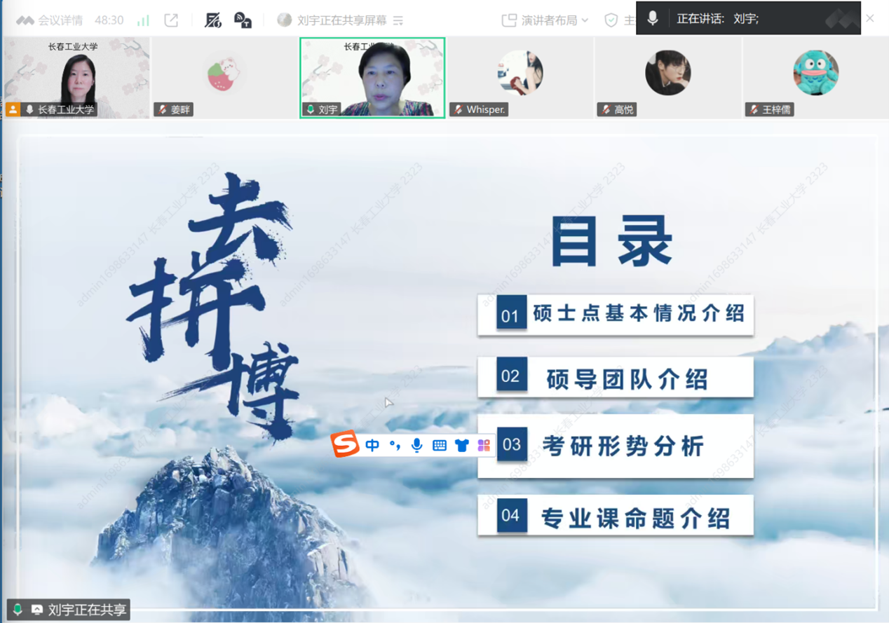 本网讯(通讯员 刘宇)为帮助学生深入了解考研动态、明确备考方向,展示学院办学实力和优势,拓展校际交流平台,9月15日,院长李秀文、副院长曾妍和英语系主任刘宇,为白城师范学院外国语学院的同学们召开了线上考研宣讲会。该校外国语学院团委书记姜畔主持会议,22、23级学生参加了本次宣讲会。