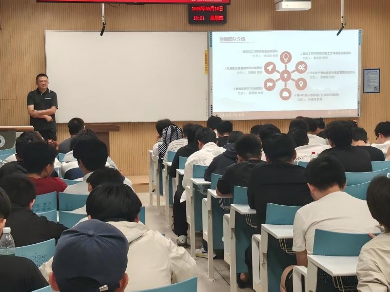 随后,张炜重点展示了六个创新研发团队的研究方向与近五年取得的显著科研成果,体现了学院在智能制造、材料加工、机器视觉等领域的科研实力与创新能力,重点介绍了学院广泛的学术交流平台和校企合作项目,为学生未来科研与实践能力的提升提供了有力保障。
