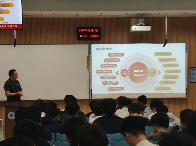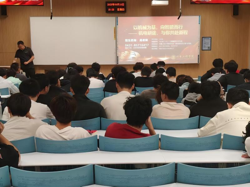 本网讯(通讯员 张炜)为深入贯彻落实研究生教育高质量发展要求,优化生源结构,提升培养质量,2025年9月18日,长春工业大学机电工程学院赴长春工程学院开展以“机智”筑根,研途等你为主题的研究生招生宣讲会。本次宣讲会由机电工程学院系主任张炜主持,围绕学校及学院概况、招生专业介绍、科研团队与导师风采、科研项目与成果、学术交流与合作以及优秀毕业生代表等六大核心板块展开,全面展示了学院的整体实力与发展潜力。