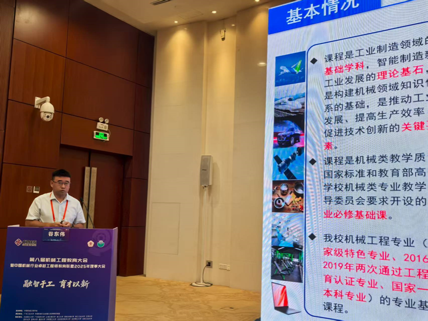 本网讯(通讯员 顾芷薇)2025年9月20-22日,以“融智于工、育才以新”为主题的第八届机械工程教育大会暨中国机械行业卓越工程师教育联盟2025年理事大会在广州举办,中国机械行业产教融合教育教学创新大赛决赛和结果发布仪式同期举办。机电工程学院谷东伟副院长在第二届全国机械制造类课程青年教师教学竞赛中荣获一等奖。