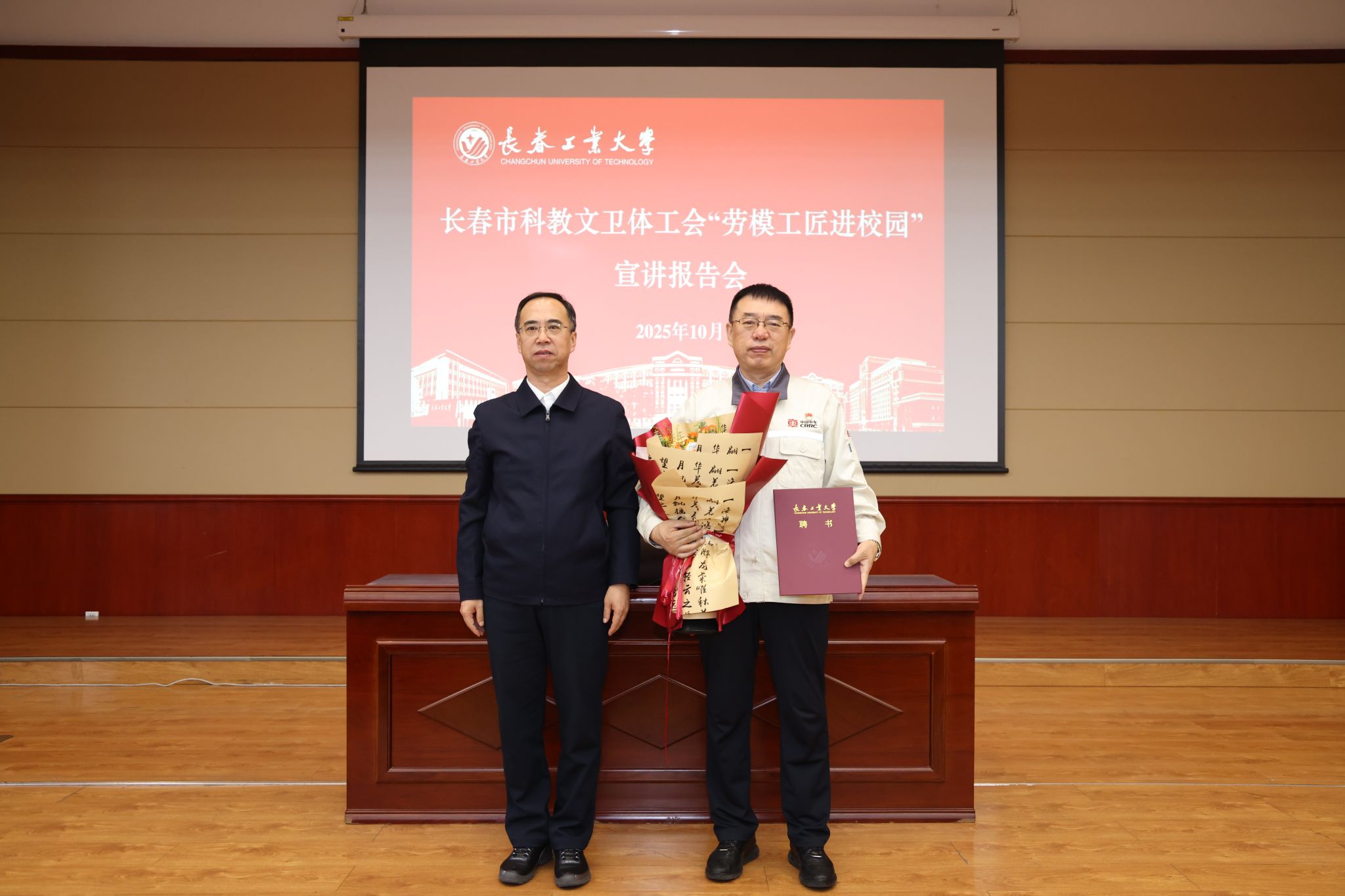 长春市教科文卫体工会主席闻凤学等一行应邀参会。学校副校长胡刃锋,党委常委、党委宣传部部长、教师工作部部长王亚坤以及党委学生工作部、教务处、工会等相关部门负责人参加活动,南湖校区300名余名学生代表现场聆听了报告。校工会主席任红主持报告会。