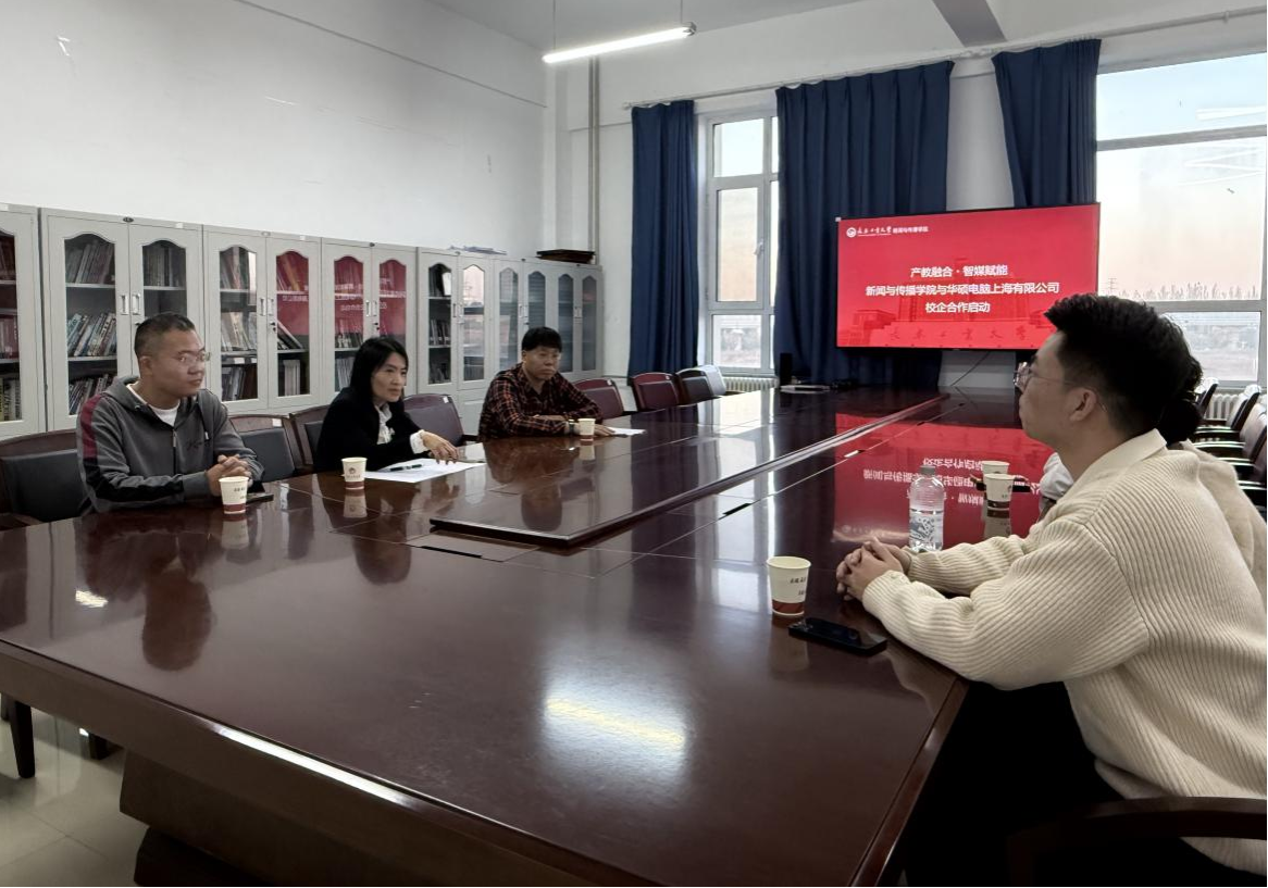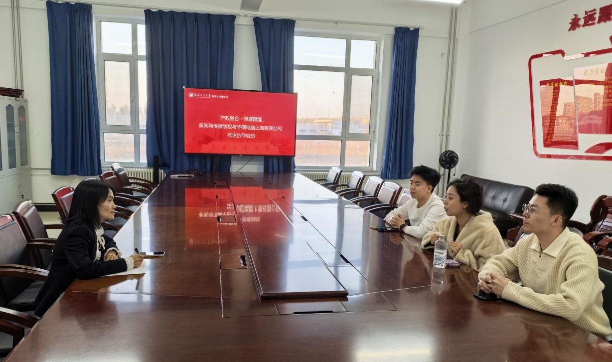 本网讯(通讯员 贾景坤)2025年10月22日下午,新闻与传播学院与华硕电脑上海有限公司校企合作交流座谈会在学院311会议室举行。新闻与传播学院院长管媛辉、网络与新媒体专业教师张汇川、数字媒体系主任于肆洋,华硕电脑上海有限公司校园运营部经理王姝蓉女士、校园运营部业务郭思琦先生、闫佳明先生出席座谈会,围绕“产教融合·智媒赋能”主题展开深度交流。