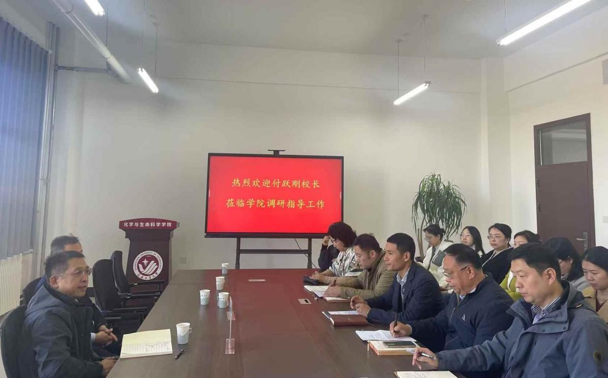 (通讯员:王宇超)10月20日上午,学校党委副书记、校长付跃刚深入化学与生命科学学院开展专题调研,指导学院高质量发展。学院党委书记朱兴国、副院长(主持工作)刘宇,以及学校党政办公室副主任邹绍岩一道陪同调研。学院党政班子成员、科级干部参加调研座谈。