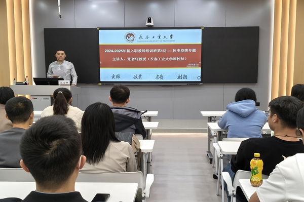 本期培训邀请了长春工业大学原校长张会轩教授做题为《长春工业大学校史校情和展望》的讲座,详细介绍了学校自1952年建校以来的发展历程,并围绕学校隶属关系的历史变迁、学校杰出人物、学校办学特色的演进、学校未来发展等方面,层层揭开了学校办学七十余载的厚重史册。他勉励新入职教师要热爱工大、胸怀全国、放眼世界、面向未来,在今后的工作生活中践行“爱国敬业 求实创新”的校训精神,共同为人才培养、科学研究、社会服务、文化传承创新等贡献“工大”力量。