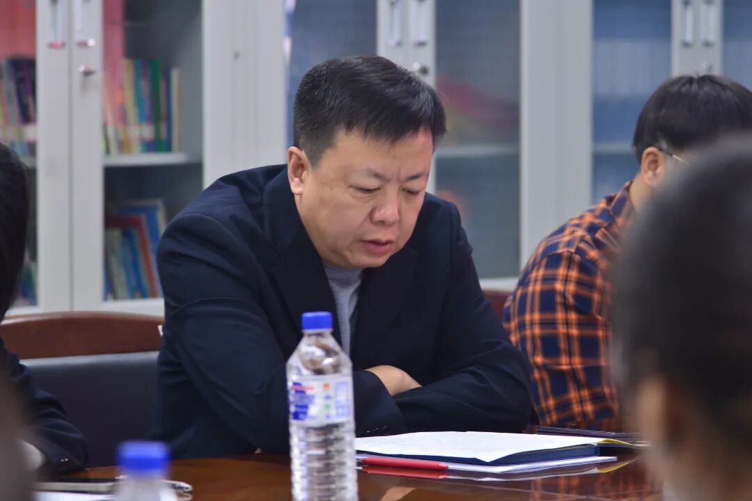 会议由长春工业大学新闻与传播学院副院长张守伟主持,长春工业大学新闻与传播学院党委书记矫东海代表学院全体师生,对湖州学院人文学院各位老师的远道而来表示热烈欢迎。双方重点围绕学科发展、人才培养等核心议题深入研讨,共话新文科建设路径。矫东海简要介绍了学院的发展历程,重点分享了学院在打造党建特色品牌、加强党业融合、发挥党建在评估工作中的引领作用以及党建工作多年取得的显著成绩,并且高度评价了湖州学院在应用型人才培养、模式创新及地方文化资源开发利用等方面积累的宝贵经验,并期待以此次交流为新起点,进一步加强双方的深层次合作。