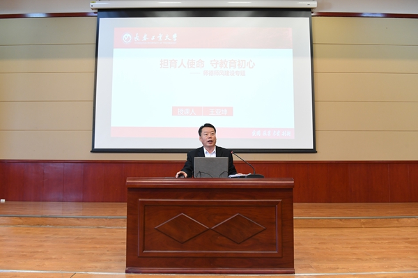 培训伊始,王亚坤部长从“师德问题”切入,深刻阐述了新时代教师肩负的育人使命。他指出,教师不仅是知识的传播者,更是学生品格的塑造者和价值观的引领者,师德师风直接关系到人才培养质量和教育事业的健康发展。他强调,广大新教师要始终牢记“为党育人、为国育才”的初心使命,把师德修养融入教育教学全过程。