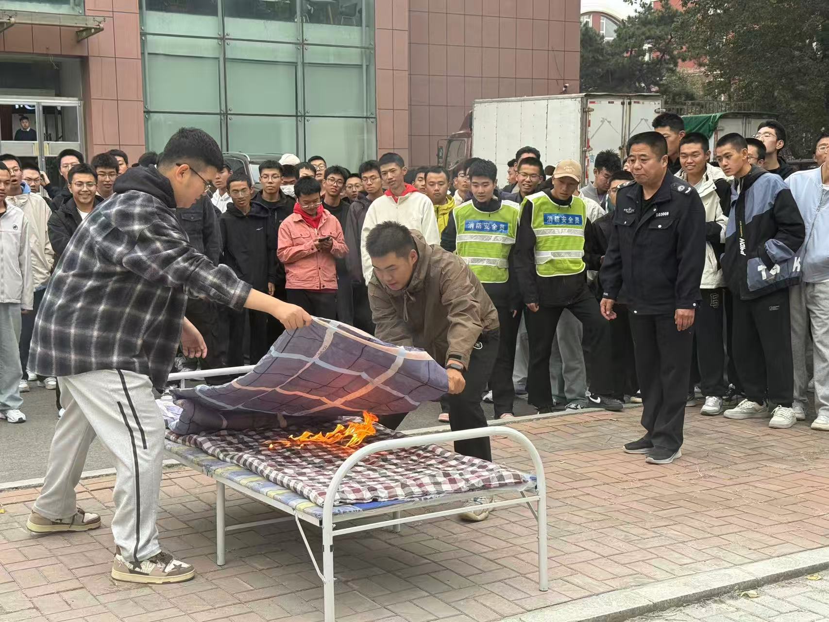 演练结束后,防火科靳朝辉、潘利国两名同志为学院师生们进行消防技能培训。详细展示灭火毯、灭火器的使用方法和注意事项,以及床铺灭火的要点,使学生们深刻认识到火灾的危害性及扑救初期火灾的必要性。
