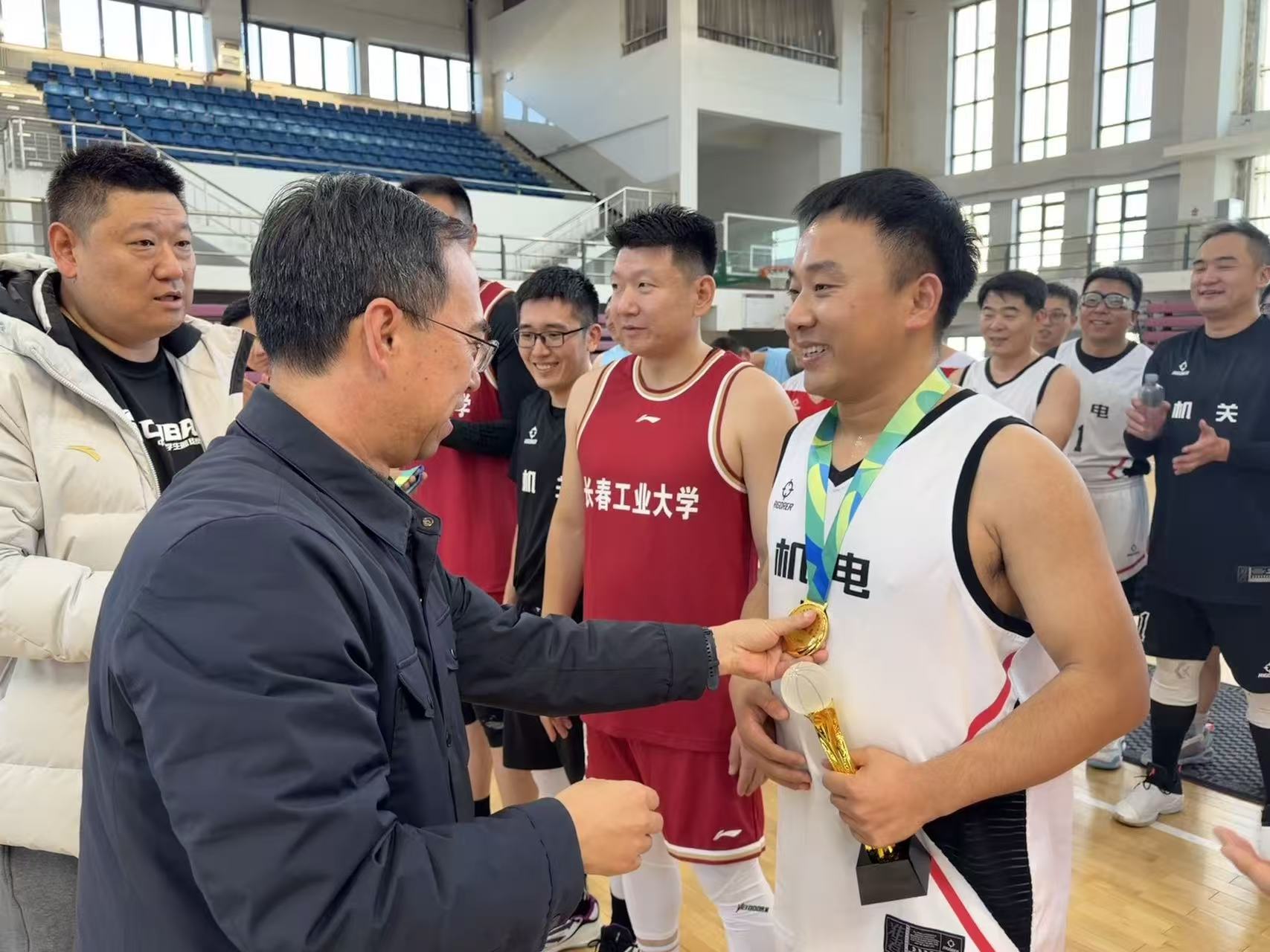 本网讯(通讯员 唐伟宸)11月19日,2025年教职工篮球赛在南湖校区体育馆圆满落下帷幕。此次活动由学校工会主办,体育教研部、学校教工篮球协会协办,设置了“教职工三人制篮球赛”与“三分球大赛”两大竞技项目,得到全校各单位的积极响应,副校长胡刃锋亲临现场观赛,并为获奖运动员颁奖。
