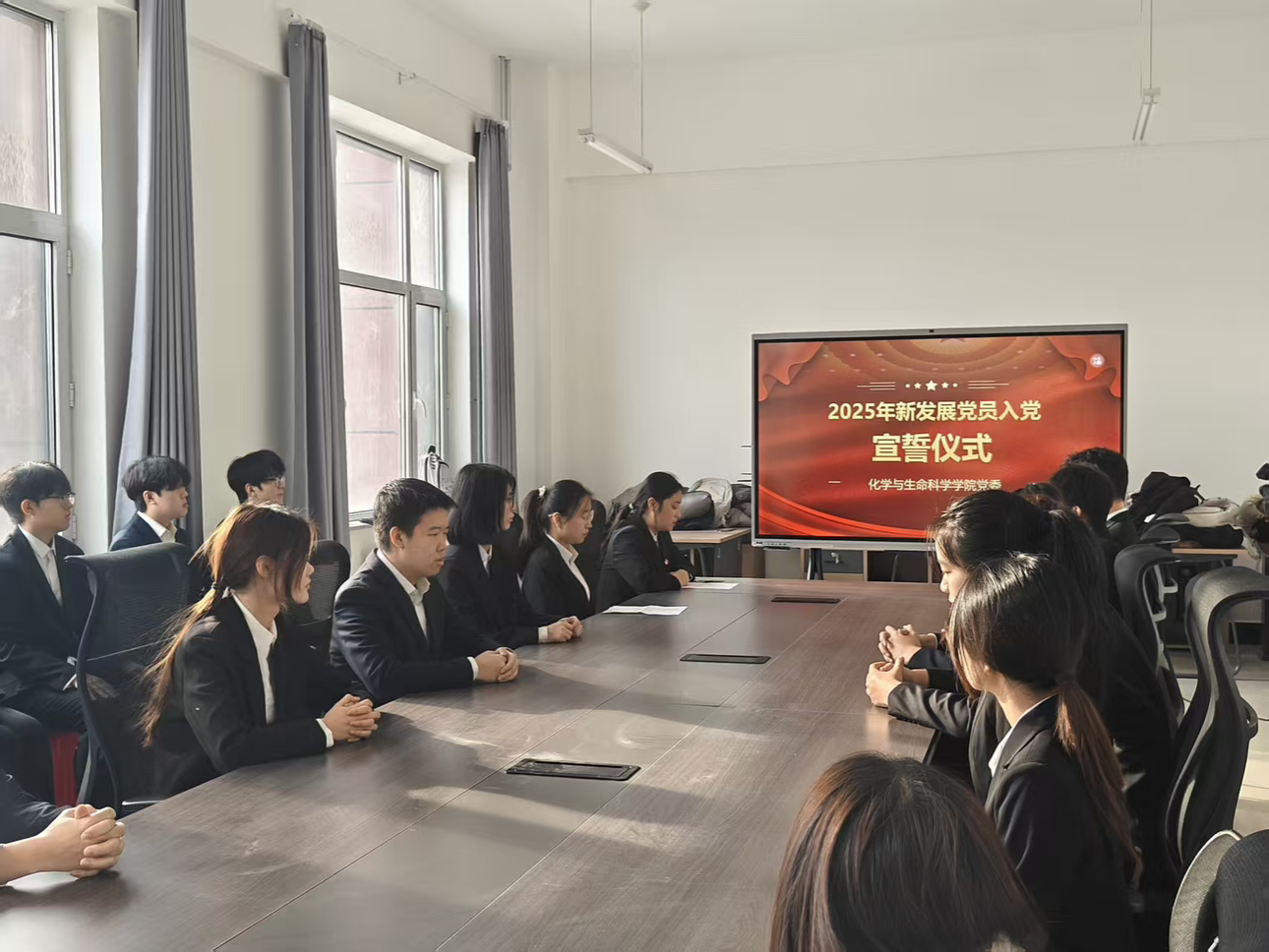 本网讯(通讯员:孙鹏博)为进一步加强党员队伍建设,增强新发展党员的党性修养与责任意识,11月26日,我院于化学化工楼A307会议室举行2025年新发展党员入党宣誓仪式。学院党委副书记郑岩、党员代表及21名新发展党员参加了此次仪式。