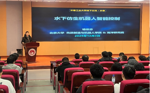 座谈会后,喻俊志教授在综合楼报告厅作了题为“水下仿生机器人智能控制”的学术报告。学院领导、青年教师,以及控制学科博士研究生、硕士研究生参加了此次学术报告会。