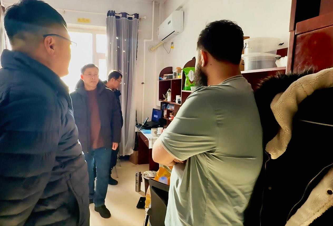 本网讯(通讯员 包宇航)为持续深化平安校园建设,切实保障在校国际学生的生命财产安全,营造安全、稳定、和谐的国际化学习生活环境,国际教育学院于12月11日组织开展了留学生公寓专项安全检查行动。本次检查由国际教育学院党委书记季宏伟带队,国际中文教育中心主任杜柏权及包宇航、张亮老师共同参加。