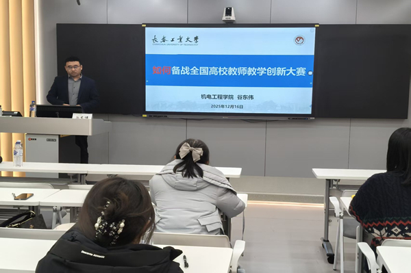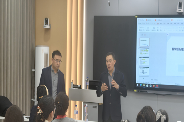 会上,谷东伟教授以《如何备战全国高校教师教学创新大赛》为题,从成绩构成、评分标准、创新成果报告、课堂实录、现场汇报等方面进行了阐述,对比赛进行了系统性的梳理,为参赛教师们有针对性地备赛提供了全面指导。此外,谷教授还围绕“如何进行教学创新设计”、“参赛个人心得感悟”两个议题进行了交流分享,为与会教师们提供了宝贵经验。