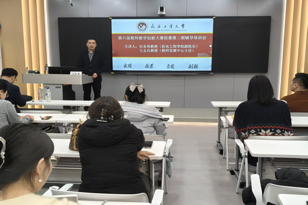 本网讯(通讯员 宋瑞夫)为帮助参赛教师更好地进行备赛工作,12月16日下午,教师发展中心在北湖校区西区主楼智慧教室举办了第六届教师教学创新大赛校赛第二期辅导培训会。本次培训会邀请了机电工程学院副院长谷东伟教授、教师发展中心主任王志兵教授作为主讲嘉宾,学校第六届教师教学创新大赛师资培育项目的全体教师及报名参加第六届教创赛校赛的部分教师参会。本场培训会由王志兵主任主持。