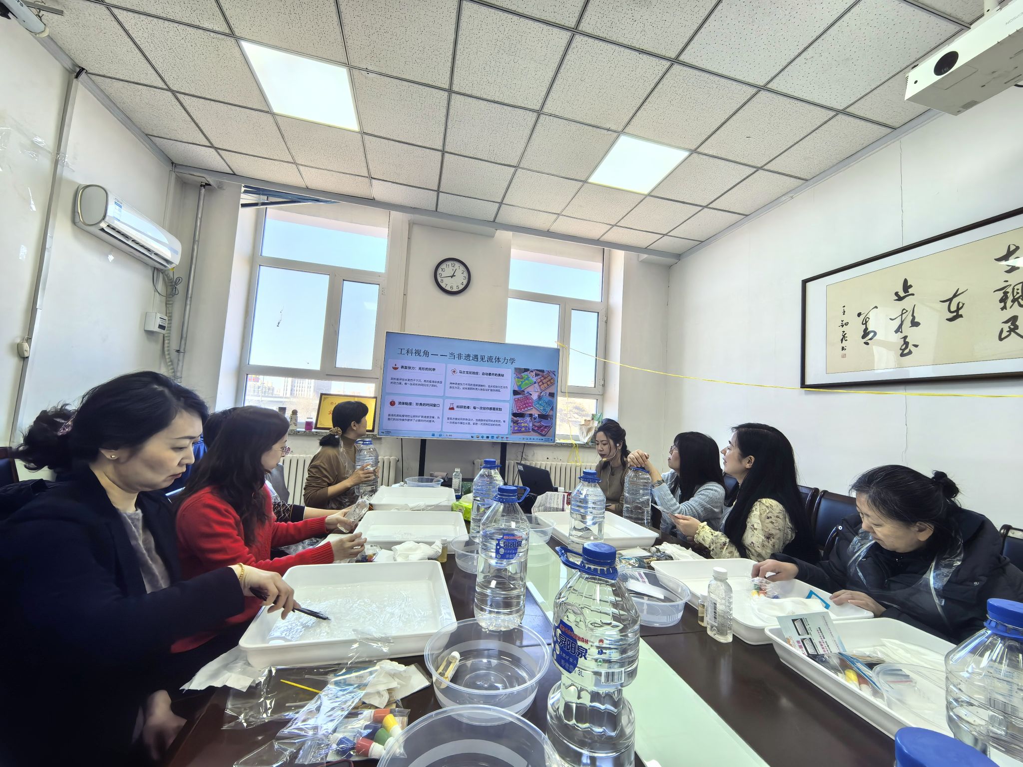 活动现场欢声笑语不断,大家互相交流创作心得,欣赏彼此作品,拍照留念,记录下这美好的瞬间。平日里专注于严谨教学与科研的“铿锵玫瑰”们,此刻沉浸于艺术创作的静谧与愉悦中,用指尖流淌的创意,诠释着对美的理解和对生活的热爱。