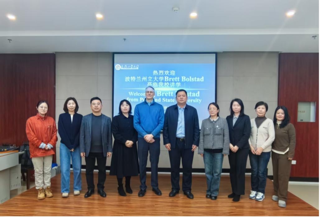 本网讯(通讯员 陈一)3月18日下午,外国语学院和国际教育学院在北湖东区主楼435会议室联合举办了“名师大讲堂”系列学术讲座第十一讲。波特兰州立大学的高级讲师Brett Bolstad受邀,为我院师生作了题为“生成式人工智能时代的英语写作教学”的学术讲座。外国语学院院长李秀文、国际教育学院副院长李宏、外国语学院副院长曾妍、教师代表、英语专业全体本科生和研究生及国际教育学院的留学生参加了此次讲座,英语系教师仲伟磁主持本次报告。