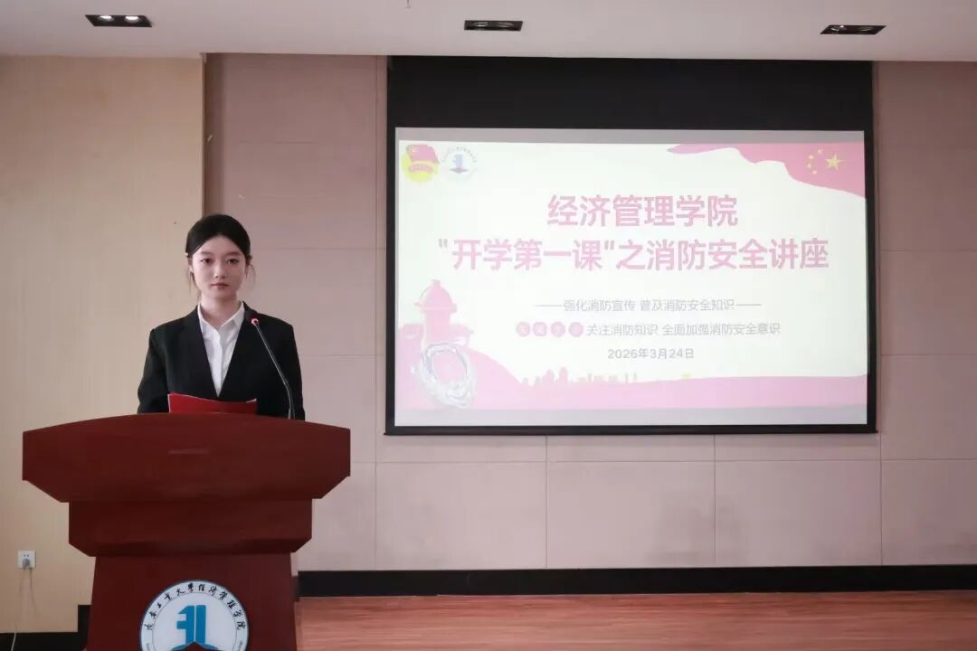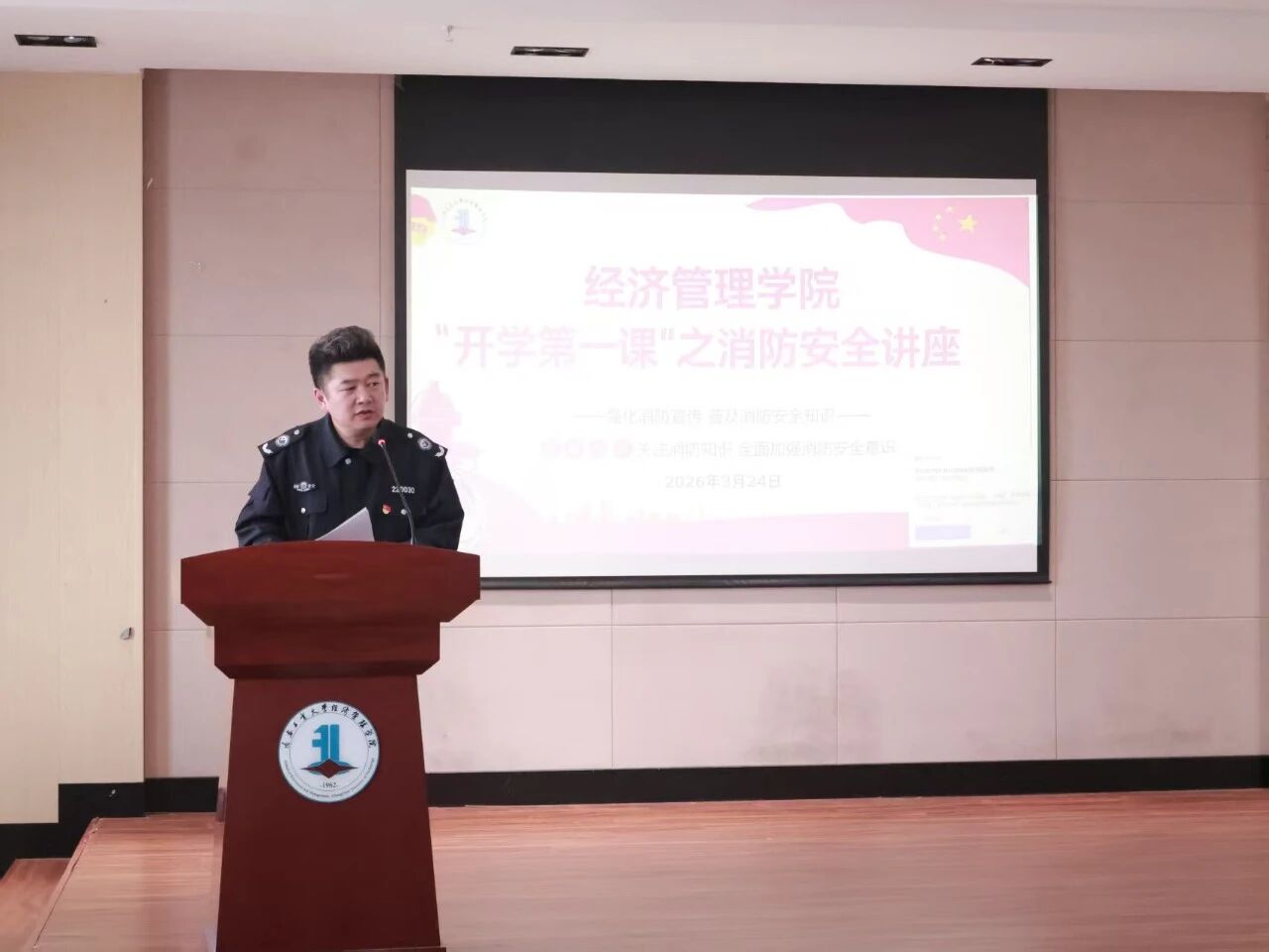 (学院网讯)为全面贯彻党的二十大及二十届历次全会精神,深入落实新时代立德树人根本任务,持续提升思想政治工作质效,引导青年学子坚定理想信念、勇担时代使命,经济管理学院联合学校安全处于3月24日共同举办“开学第一课”系列教育活动之“护航成长第一课”消防安全主题活动。
