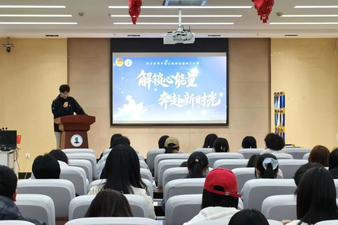 (学院网讯)为全面贯彻党的二十大及二十届历次全会精神,深入落实新时代立德树人根本任务,持续提升思想政治工作质效,引导青年学子坚定理想信念、勇担时代使命,经济管理学院于3月25日在主楼617报告厅开展“开学第一课”系列教育活动之“润心赋能第一课”心理调适趣味互动课,将传统游戏与心理知识相结合,通过小组合作、积分比拼的形式,在轻松氛围中普及心理健康常识,提升学生的情绪调适能力。本次活动由社团管理指导中心副主任张艺龙主持。