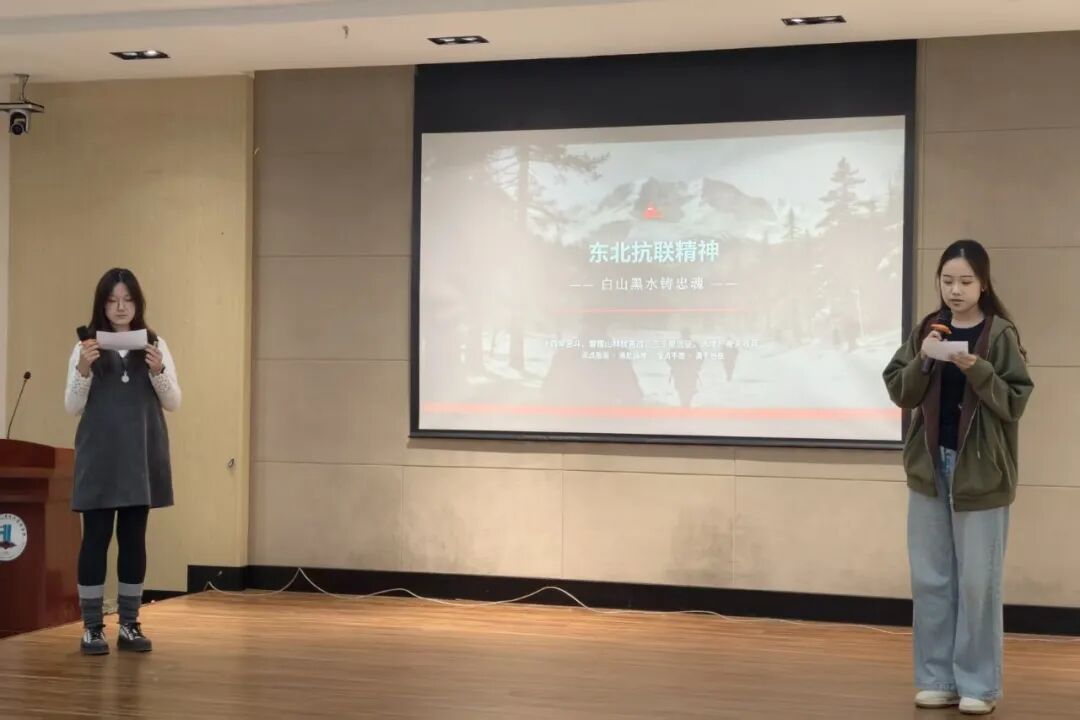 活动期间,同学们通过相声、舞台剧等表演形式,讲述了东北抗联革命先辈的感人事迹,生动再现了战火纷飞的革命岁月。他们凭借极富感染力的表演,深刻诠释了革命先辈们英勇无畏、舍生忘死的精神。现场精彩的演绎不仅让同学们深切体悟到革命岁月的艰辛,更激发了大家对革命历史的深刻思考。