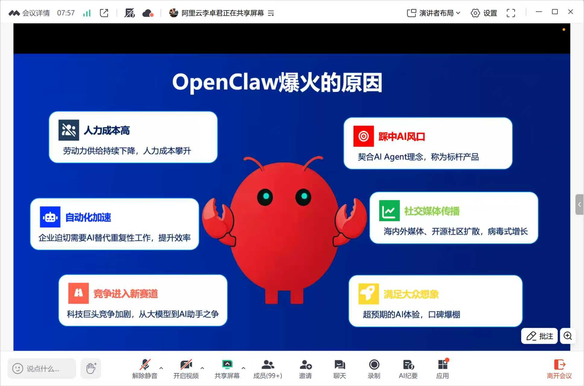 在核心分享阶段,专家逐一演示OpenClaw的云端安全部署全流程,从环境配置、模型对接,到插件装载、权限设置等关键步骤,逐一拆解、细致讲解,并同步解答实操中的常见问题,为同学们提供了可直接落地的学习指导。同时结合行业发展趋势,为同学们的技术学习与职业规划给出针对性建议。