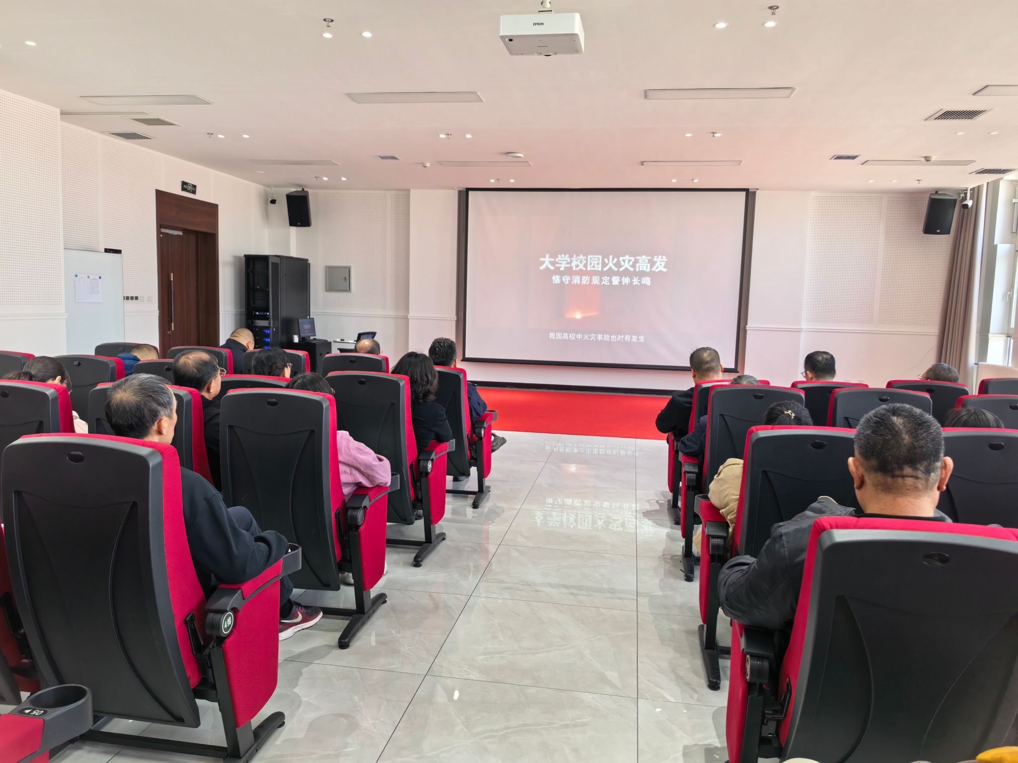 培训伊始,全体馆员集中观看了国家消防救援局制作的警示教育片。影片中,一幕幕因电器线路老化、违规使用大功率电器等疏忽而引发的校园火灾画面触目惊心,真实的案例和受灾人员的亲身讲述,深刻揭示了“隐患险于明火,防范胜于救灾”的残酷现实。强烈的视觉冲击和情感震撼让在场的每一位馆员深刻认识到,图书馆作为藏书密集、人流量大的重点防火单位,任何微小的麻痹大意都可能酿成无法挽回的损失。