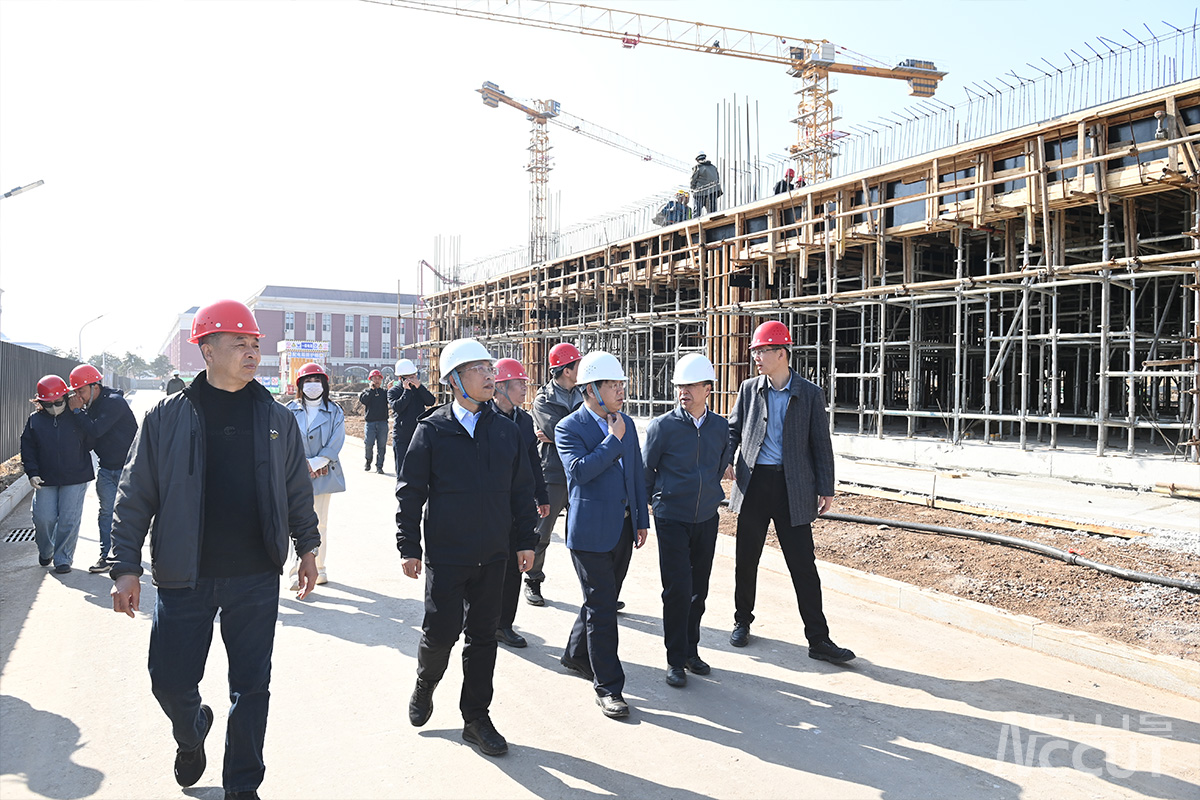 新闻网讯(通讯员 张莹)4月15日下午,学校党委书记陈权、校长付跃刚、副校长胡刃锋深入北湖校区基建工程施工现场,实地调研检查施工安全、质量管理与工程进度,组织召开在建项目安全、质量、进度协调推进会,系统梳理各项目关键节点堵点难点,统筹部署重点建设任务,为推动学校高质量发展筑牢安全稳定根基、提供坚实支撑保障。基建处全体工作人员参加调研。