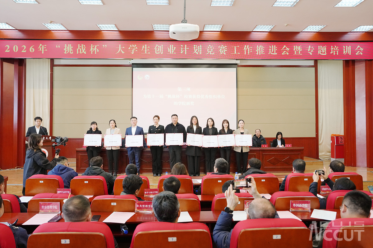 会上,付跃刚为2025年“挑战杯”国赛获奖项目指导教师颁奖;吴成章为第十一届“挑战杯”校赛获得“挑战杯”和“优胜杯”的学院颁奖;与会领导为第十一届“挑战杯”校赛获得优秀组织单位的学院颁奖;学生工作部部长孙兆龙宣读《关于表彰第十一届“挑战杯”长春工业大学大学生课外学术科技作品竞赛获奖集体和个人的决定》,公布《第十九届“挑战杯”全国大学生课外学术科技作品竞赛获奖项目指导教师名单》;团委书记邵捷作2026年“挑战杯”大学生创业计划竞赛工作部署,他全面总结了上一届“挑战杯”赛事取得的突破性成绩,对2026年“挑战杯”赛事的赛程安排、评审机制、项目培育等重点工作进行了布置。