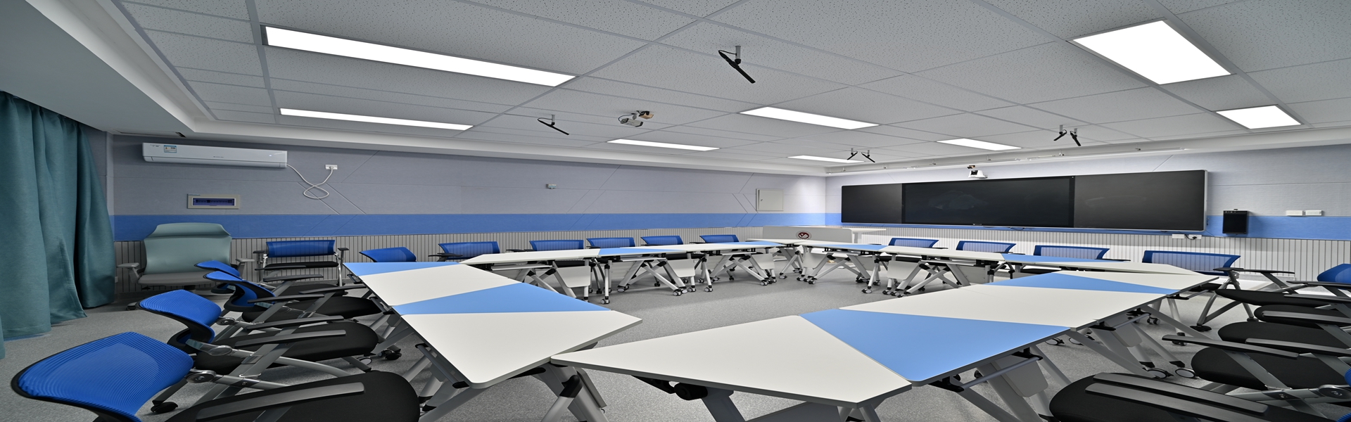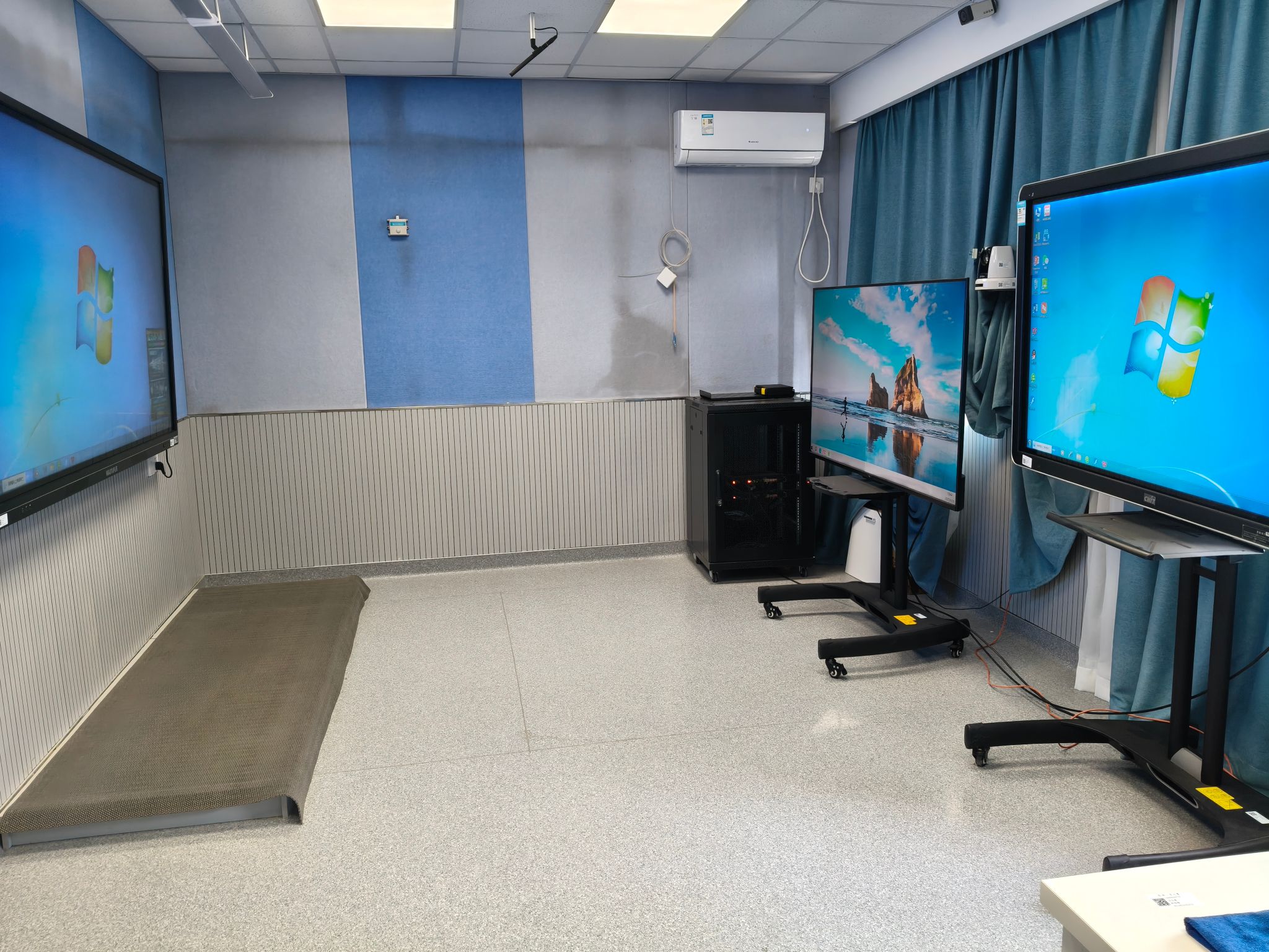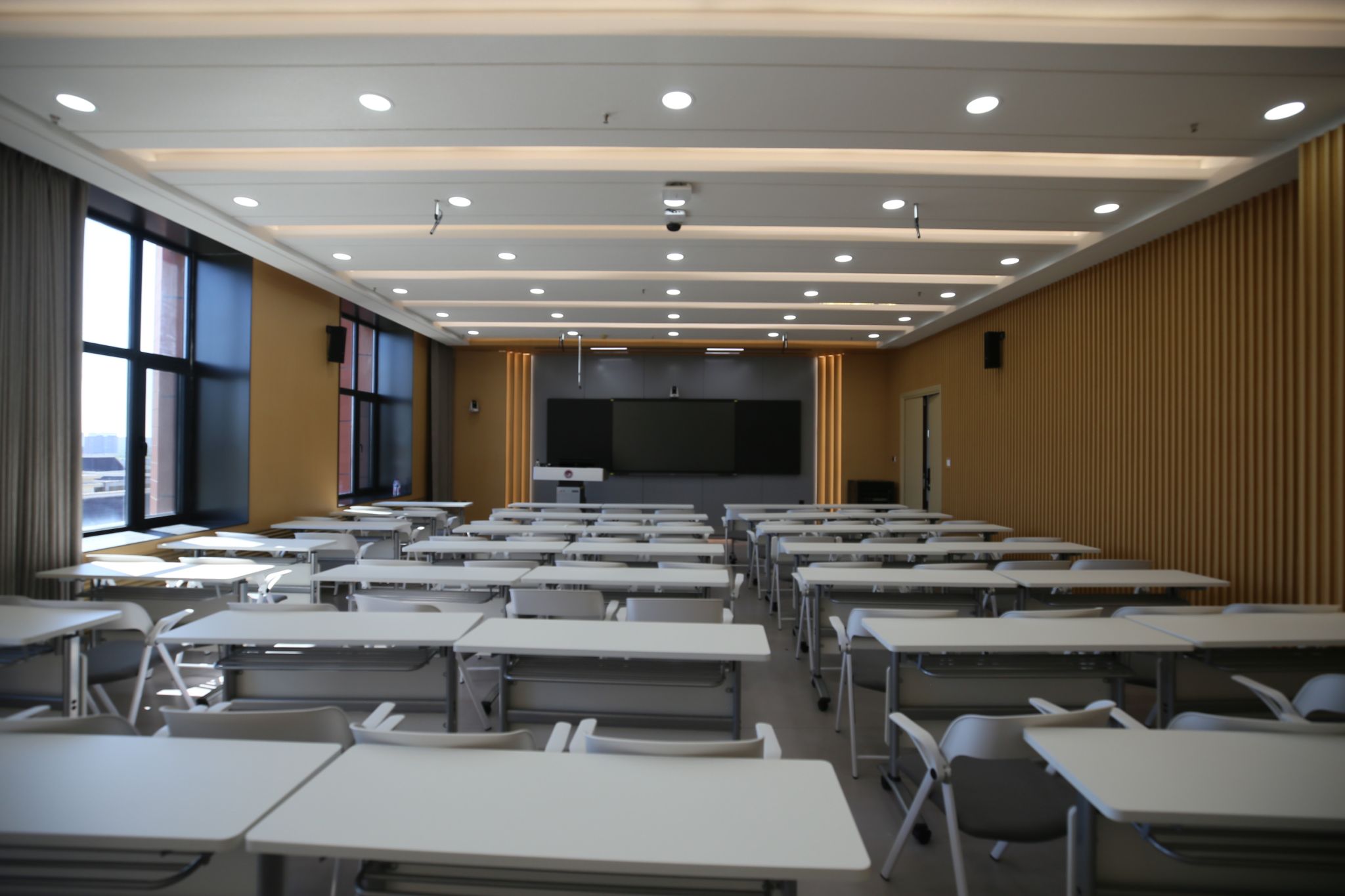 功能:可容纳45人,可移动长条桌椅,开展小班授课、观摩示范课等教学活动及实现课堂教学录播等功能。