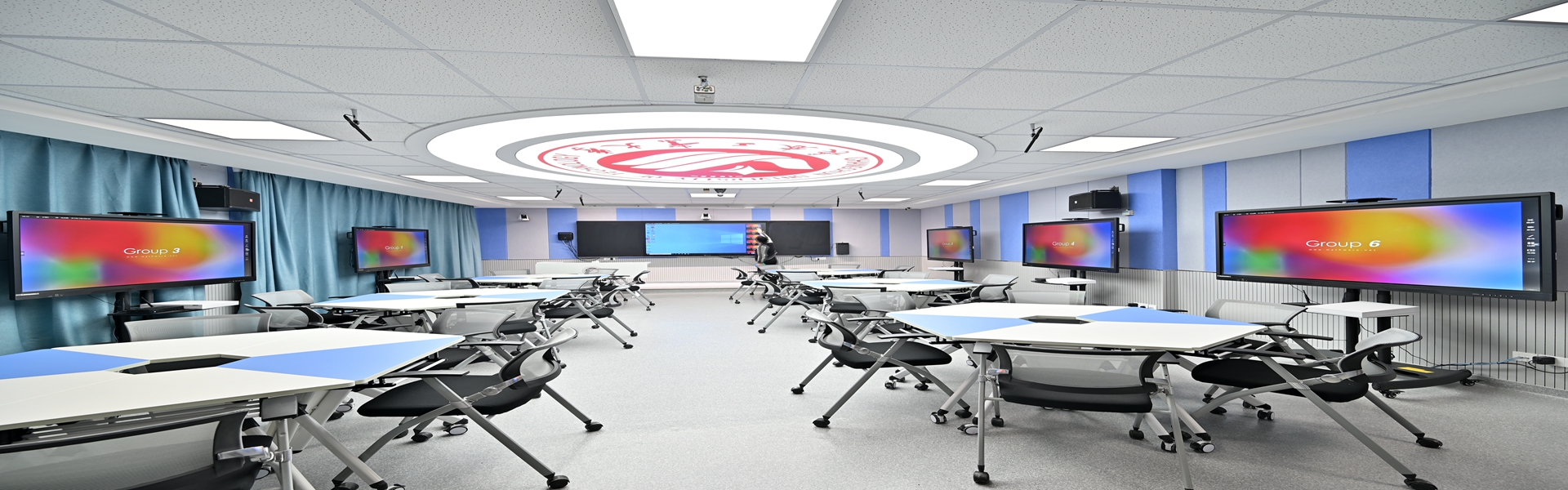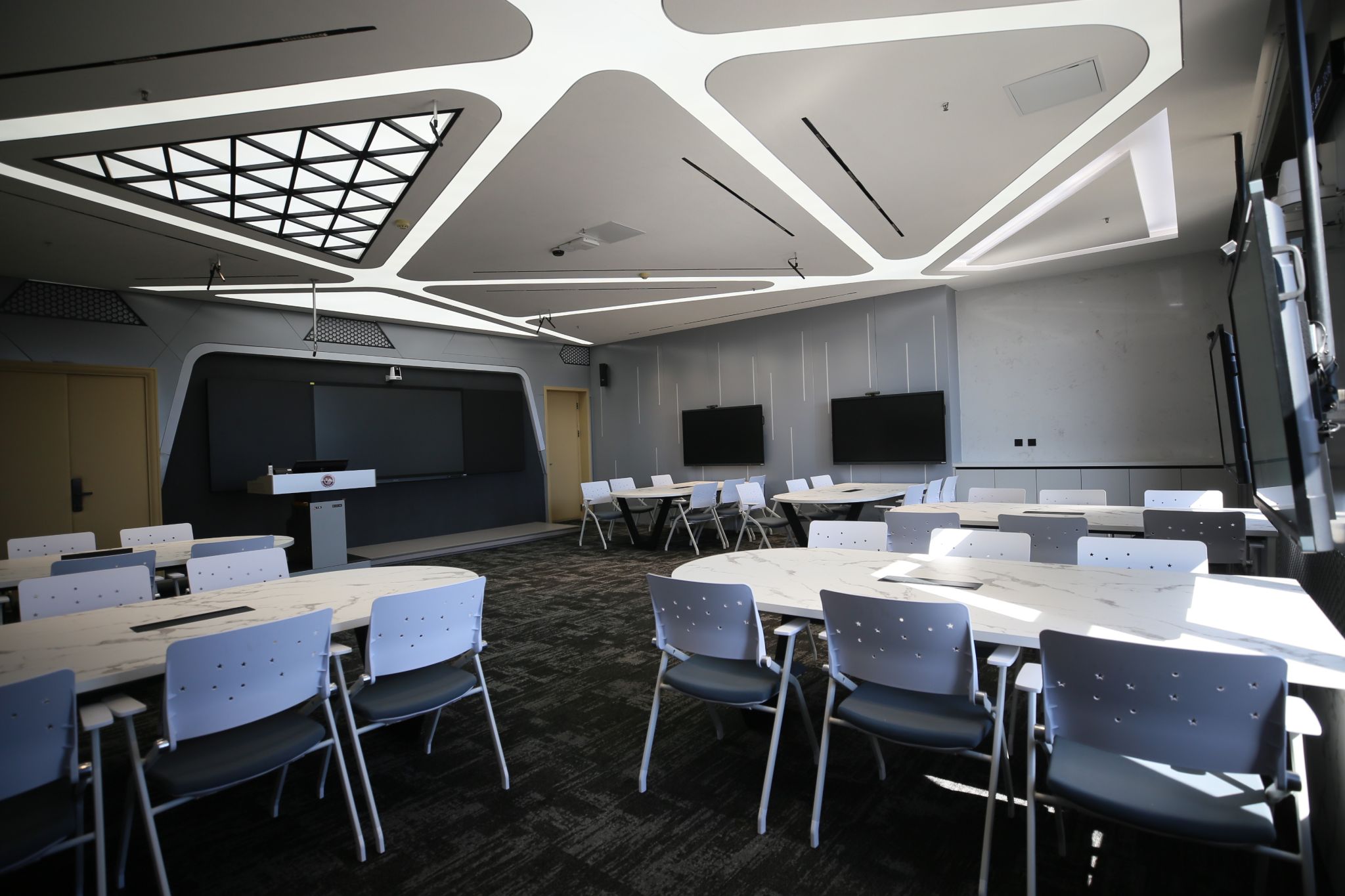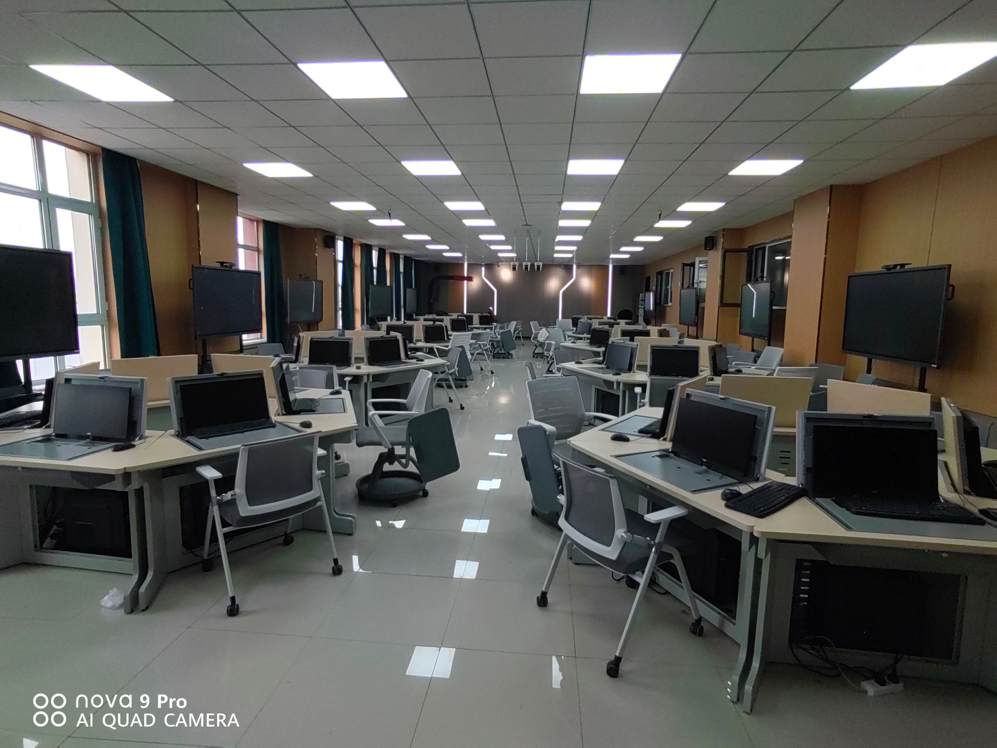 功能:可容纳45人,可移动长条桌椅,开展小班授课、观摩示范课等教学活动及实现课堂教学录播等功能。